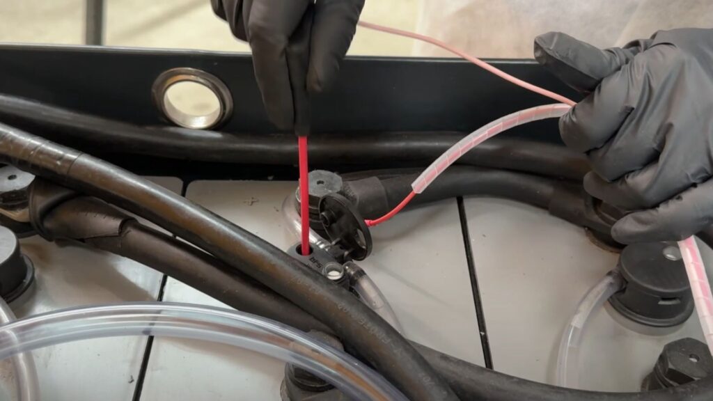 • La sonda va inserita in profondità, fino a toccare l’acido, sullo stesso elemento dove è collegato il cavo rosso.